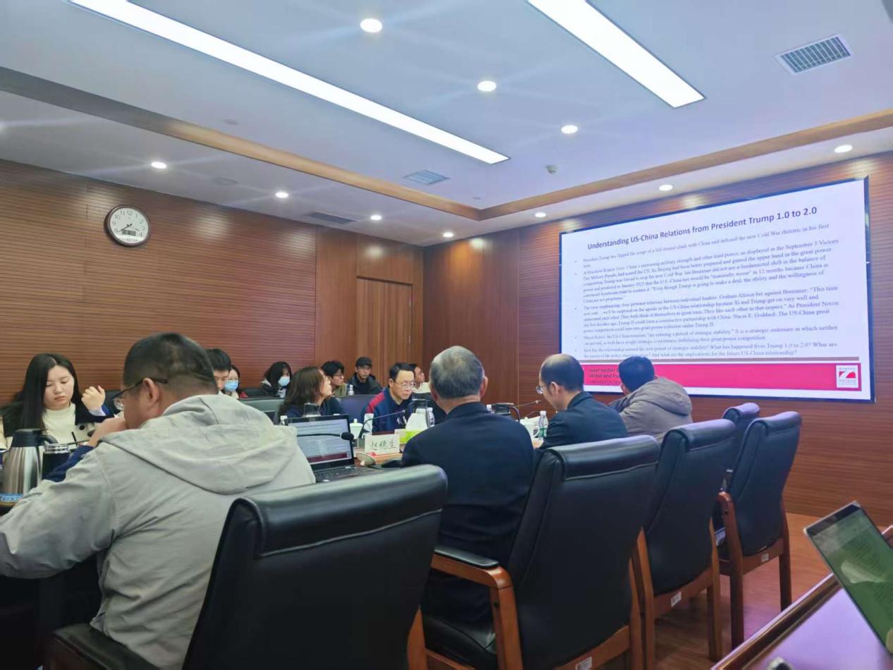 赵穗生教授以“中美大国博弈:从特朗普1.0到2.0”为题,从特朗普政府两个任期内对华政策的显著差异的角度,系统梳理了2017年以来中美关系的核心变化脉络,并深刻剖析了其转变的内外动因。他指出,特朗普政府的对华态度已从 1.0时代的“新冷战”思维主导转变为2.0时代的经济竞争优先,政策方向发生关键转向。